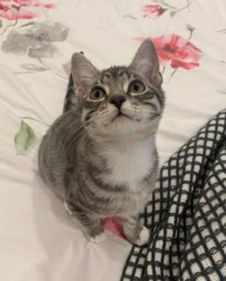 his little man is the sweetest kitten to walk the earth. When he is awake he purrs like a tractor! He absolutely love cuddles and has the most beautiful little face. He loves chasing his toys around the house, playing with his siblings and boxes! He is a good fit for any home where he will get plenty of love! He currently is being fostered with his siblings and he loves his brother, Dusty.