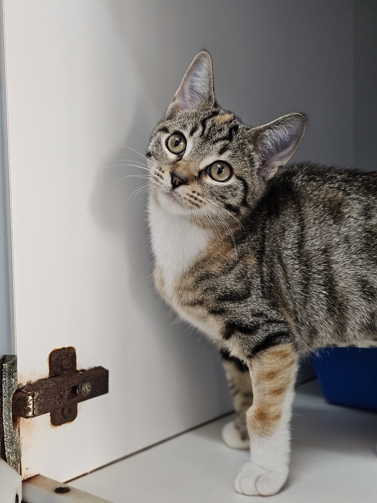 I have perfected the art of the irresistible purr. It's like my secret weapon for getting all the cuddles and chin scratches I could ever want. Life's just one big, exciting string of moments, and I'm here to make every second count - whether I'm chasing my tail or sharing some purr-fectly quiet time with my favourite humans. So, if you're up for a bundle of furry fun and a lifetime of companionship, please consider adopting me!