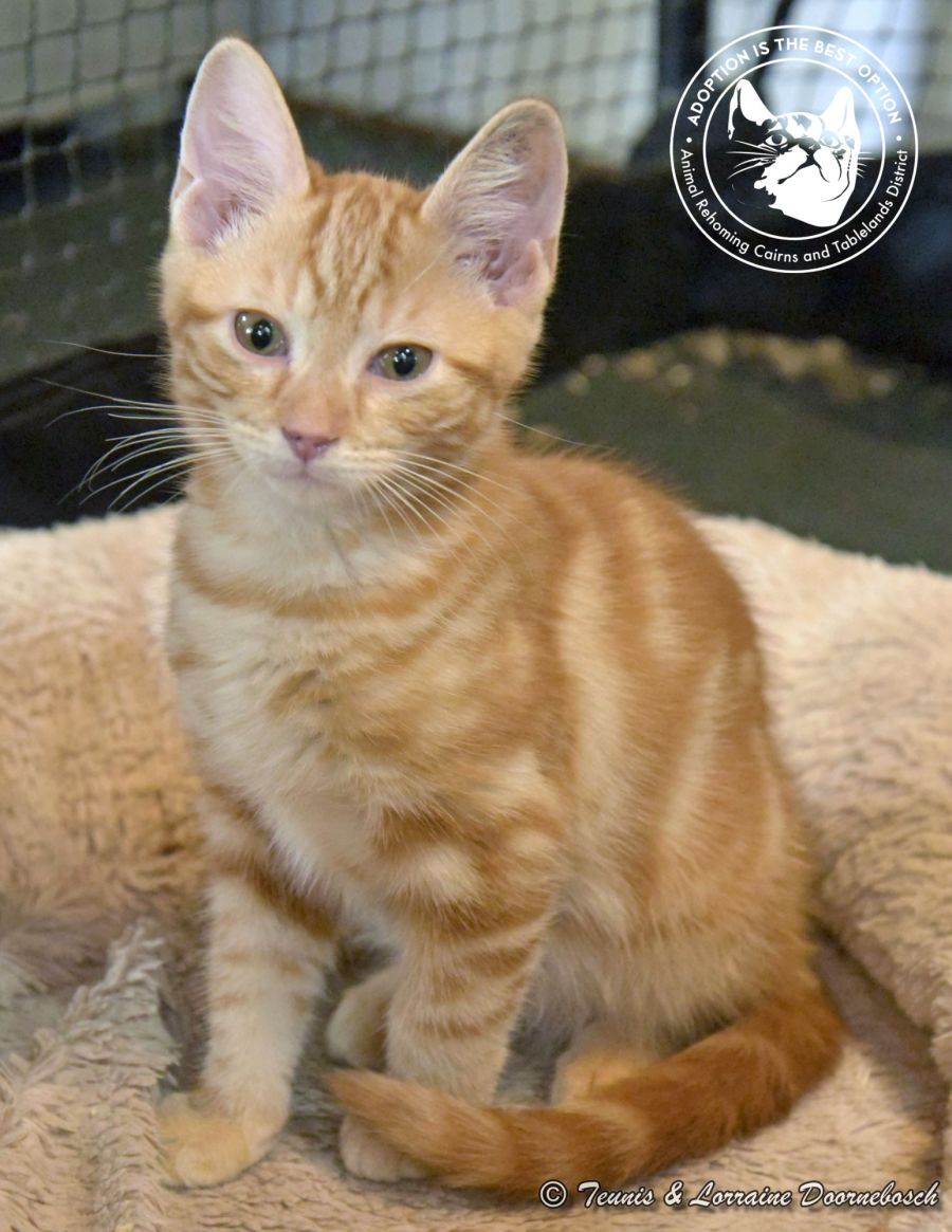 Andesine is one of the 9 kittens named for precious stones. He came to us from Mt Garnet with 13 other kittens. All of the kittens were quite shy and feisty but, with good food and loving care, they're starting to prove that their shyness was environmental and not in their nature. Andesine (Andy) is a stunning ginger classic tabby. Beautiful to look at and beautiful by nature. He is still quite hand shy, so he will need time to get used to feeling good about getting stroked and petted and your patience will be rewarded as he has a very gentle nature.