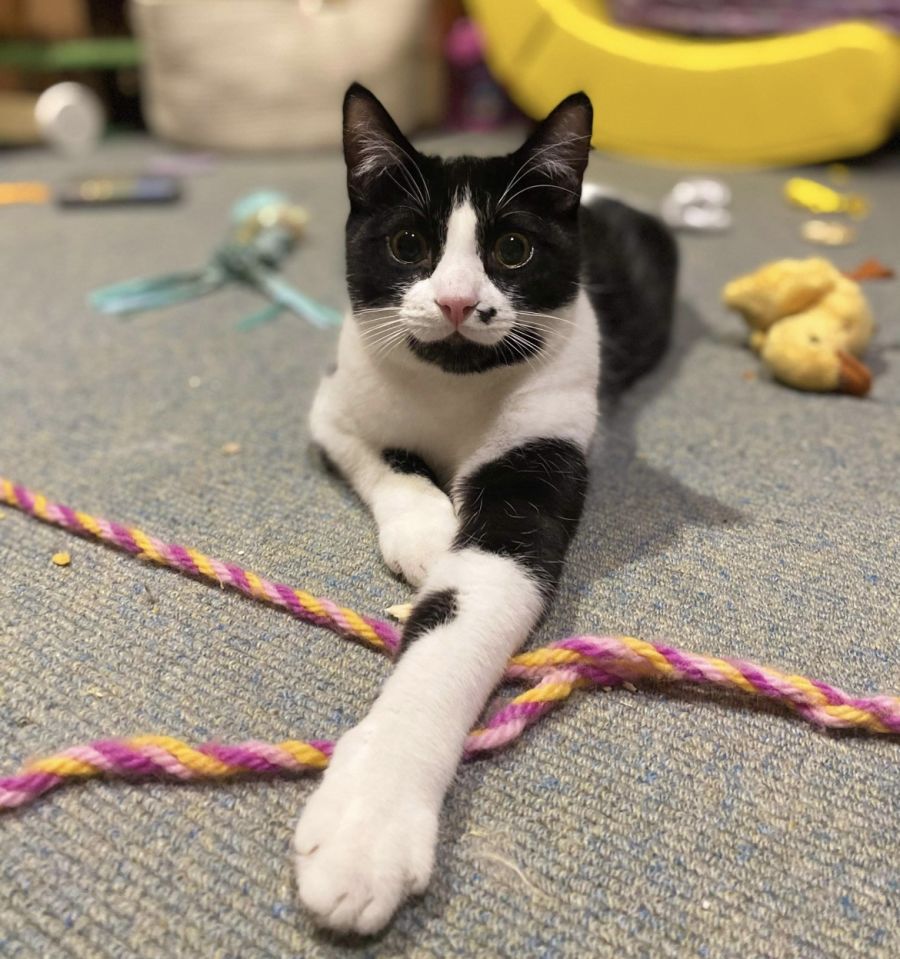 He loves other cats, would best suit a home with a little cat friend to play with. A kitten who simply loves every cat and would be a great fit for someone looking for a little companion for them and their existing cat. Or he would be fine in a home as a solo cat where he gets all the attention.