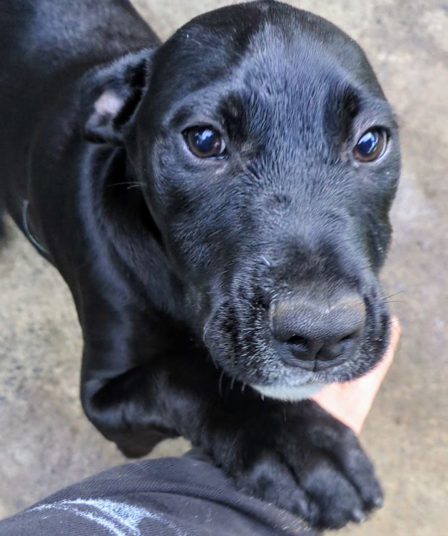 š¾ Colleen is hard to photograph as she doesn't hold still for very long, so check out her videos! She resembles an all-black Labrador and will likely grow to be medium sized.