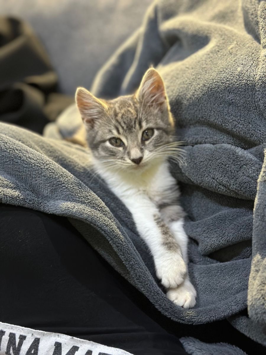 Oz would love to be adopted by a family who can provide laps for him to sleep on and plenty of chin scratches. He would do best in a home with an older cat, another kitten or a human who is around much of the day to keep him company.
