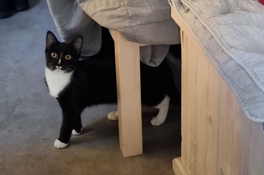 Oreo isn't your average kitten. This dapper little dude boasts a shiny black tuxedo coat and a personality that unfolds like a surprise gift. At first, he might be a bit reserved, but beneath that shy exterior lies a heart overflowing with affection. Once he warms up, get ready for an even cuddlier companion than his sister, Mimi!