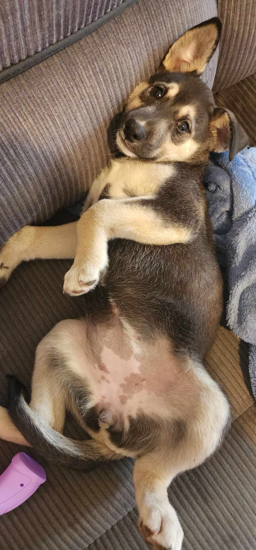 Yet, she's as much a fan of downtime snuggles on the couch with her humans as she is of playtime.