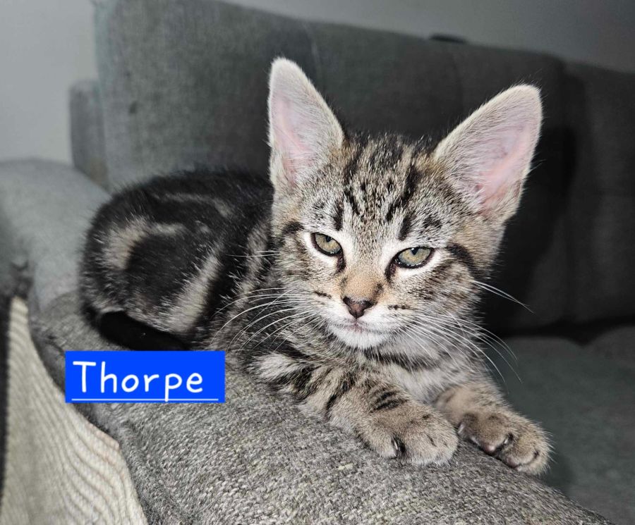 Thorpe is named after a famous swimmer just like his brothers Hackett and Klim. His unique start in life imbues him with a determined and playful spirit. This adventurous kitten has a great love for life and embraces each day with energetic fervour. He is well-adjusted and vibrates with youthful enthusiasm.