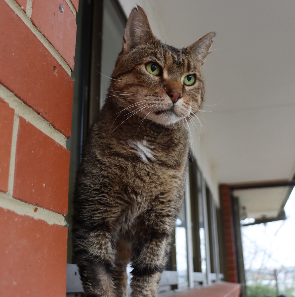 Meet Snickers, the charismatic Bengal cross with a personality as unique as his striking coat. While Snickers may prefer to keep his paws on the ground and not be picked up, he's still a wonderful companion for teens who understand his boundaries. With his independent spirit, Snickers marches to the beat of his own drum, relishing in his solo adventures and entertaining himself with toys and exploration.