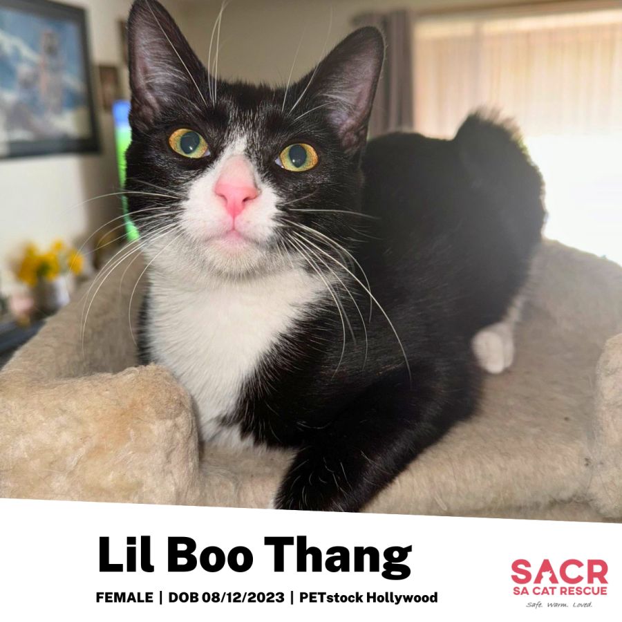 If you're looking for a sweet, affectionate companion to share calm and peaceful days with, look no further than our lovely Lil Boo Thang. She's an absolute delight! With patience and gentle care, her heart bursts with love, and she is sure to bring joy to your home.