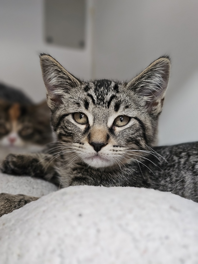 Hey there, I'm Frill. I'm a friendly and affectionate kitten who would suit most homes! My playful paws are always ready to pounce on anything that moves. I love playing with wand toys and mysterious shadows on the wall! When I'm finished playing, I love nothing more than finding a warm lap to curl up in.