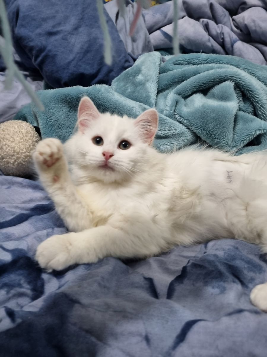 She enjoys cuddles with the people, other cats and the dogs in the house.