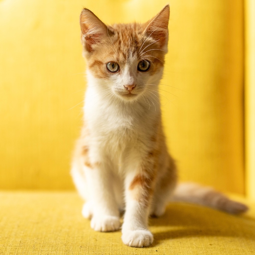 Jai is a sweet little ginger boy, who can be a little shy at first but once he warms up he’ll be the first to greet you when you get home & will follow you around the kitchen while you cook. Jai has a good little purr on him and is happy to be picked up and enjoys a snuggle. He loves to play with his siblings and has been fine with the resident doggo, though is a little wary.