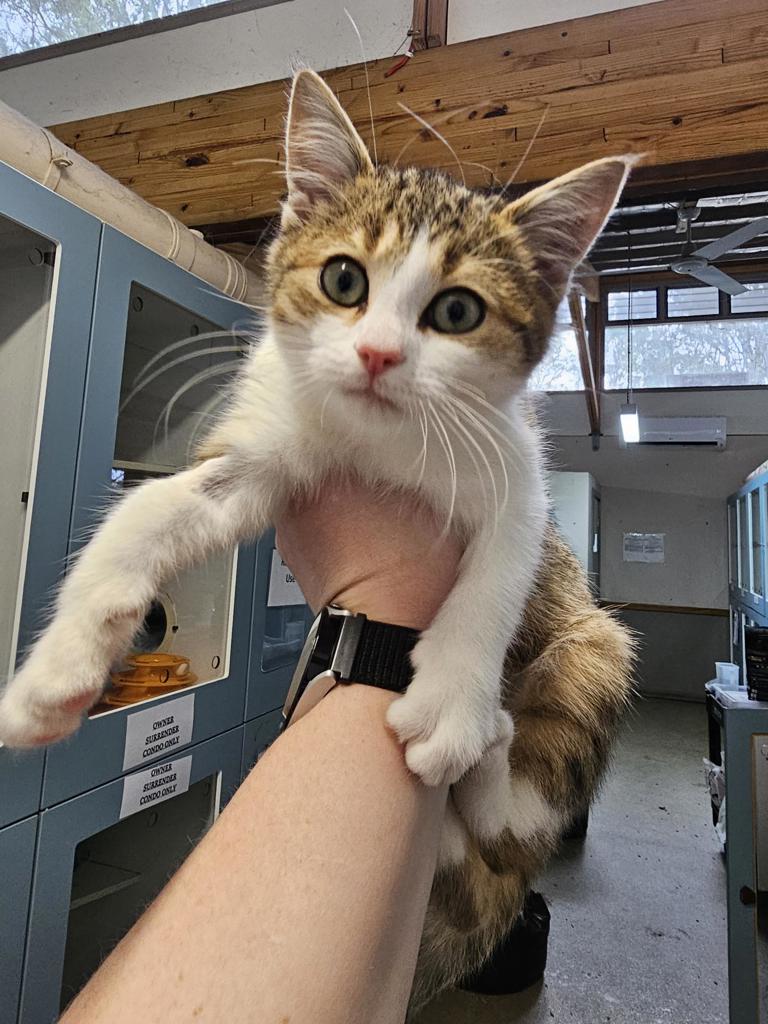 Hey there, I'm Dino. I'm a friendly and affectionate kitten who would suit most homes! My playful paws are always ready to pounce on anything that moves. I love playing with wand toys and mysterious shadows on the wall! When I'm finished playing, I love nothing more than finding a warm lap to curl up in.