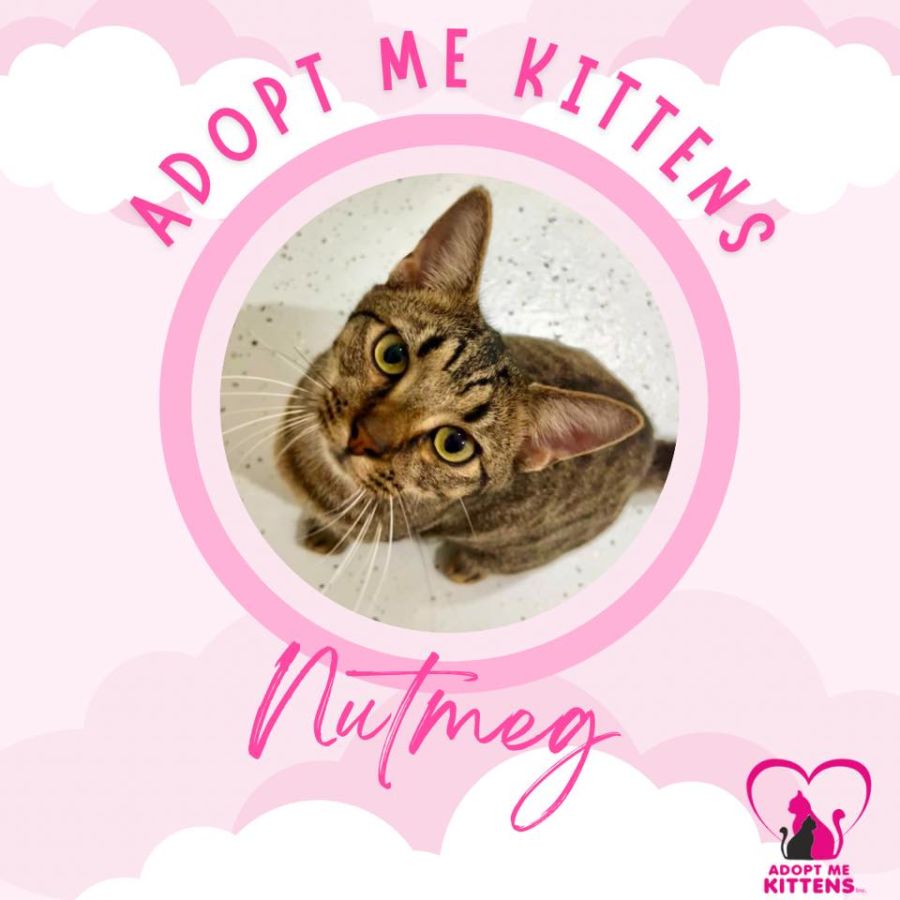 Nutmeg is bomb proof, good with kids. He will be best suited as an inside/outside cat.