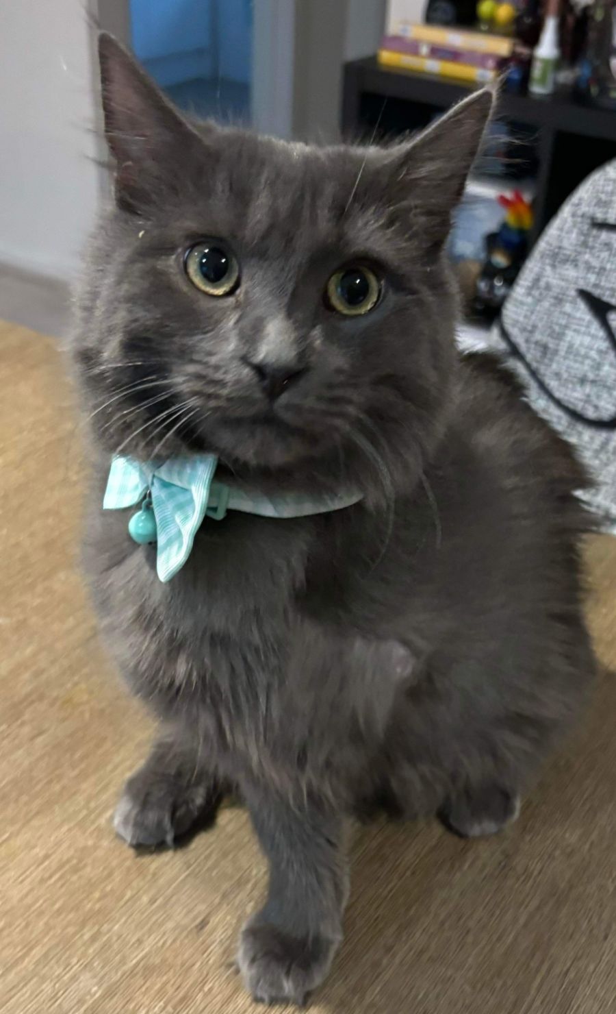 Not only does Harry enjoy spending time with humans, but he also interacts well with other animals. Currently, he lives peacefully with two small friendly dogs and loves to engage in a playful romp with the younger pup. He has also proven friendly towards other cats. This sociability makes him quite adaptable within a multi-pet household.