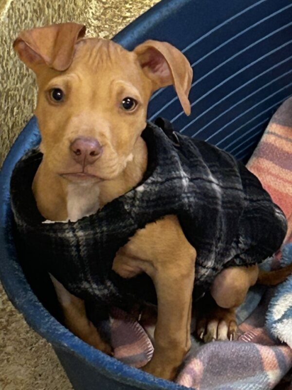 I'm a puppy full of energy and curiosity, ready to explore the world. I might be a bit shy at first, but give me a moment and my sweet, friendly nature will shine through. I'm eager to learn new things, so I'll need to go to puppy school. I can't wait to learn all the tricks and manners to become the best companion. Training will be an ongoing journey for us, but I promise it will be worth it. Adopting me means gaining a loyal friend who's always ready for the next adventure. Must meet all Dogs On going positive reinforcement training Must go to puppy school