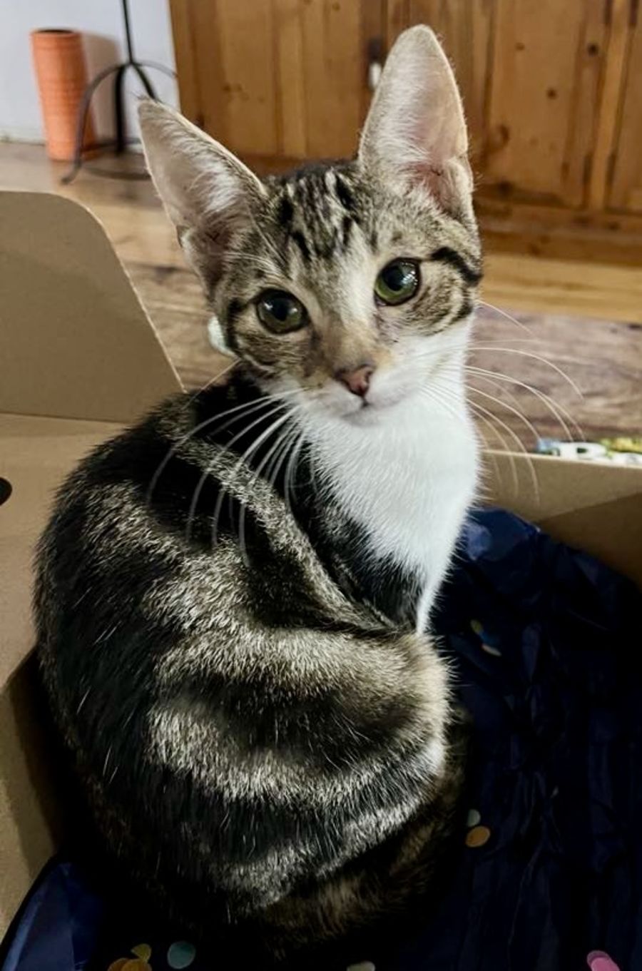 Snickers' playfulness and curiosity will have you endlessly entertained. Experiencing life through her fresh, kitten eyes is a delight, and watching her frolic and explore around the house is a sight to behold. Snickers is a charming, playful kitten who is on a constant quest to squeeze every drop of fun out of her day.