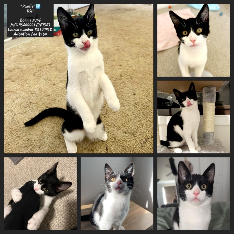Paulie is a low maintenance cat, he is very happy to have his alone time but loves being able to come and say hello or play with his foster siblings.