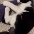 He loves his foster siblings and we would highly recommend Paulie to join a household that already has another cat for him to play with. He wrestles with his foster mums cats every day and always snuggles up to them when they let him.