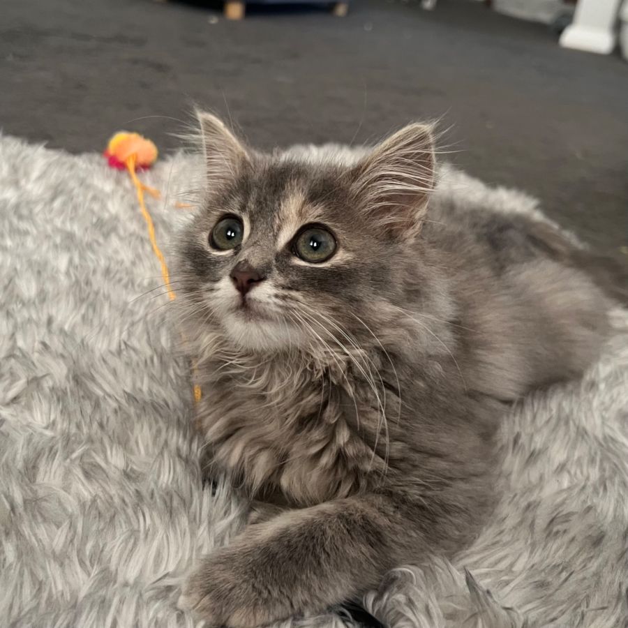 Playfulness is Tilly's second nature. She can entertain herself for hours with a laser pointer, any dangly toys on a string, or even just random items that roll across the floor. Regarding grooming, her lovely long hair will require a bit of care; regular brushing will help her look her best and avoid matting.