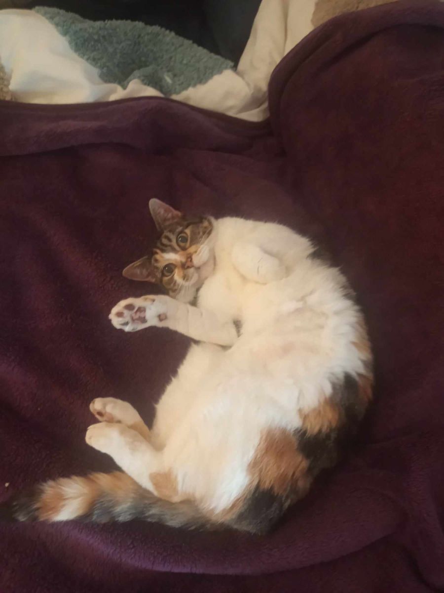 She adapts quickly to new things and new people and would probably even do well with learning some cat tricks with the right person (provided excellent treats are involved, obviously). She gets the zoomies a few times throughout the day and could use participation in her mental stimulation during these times where possible.