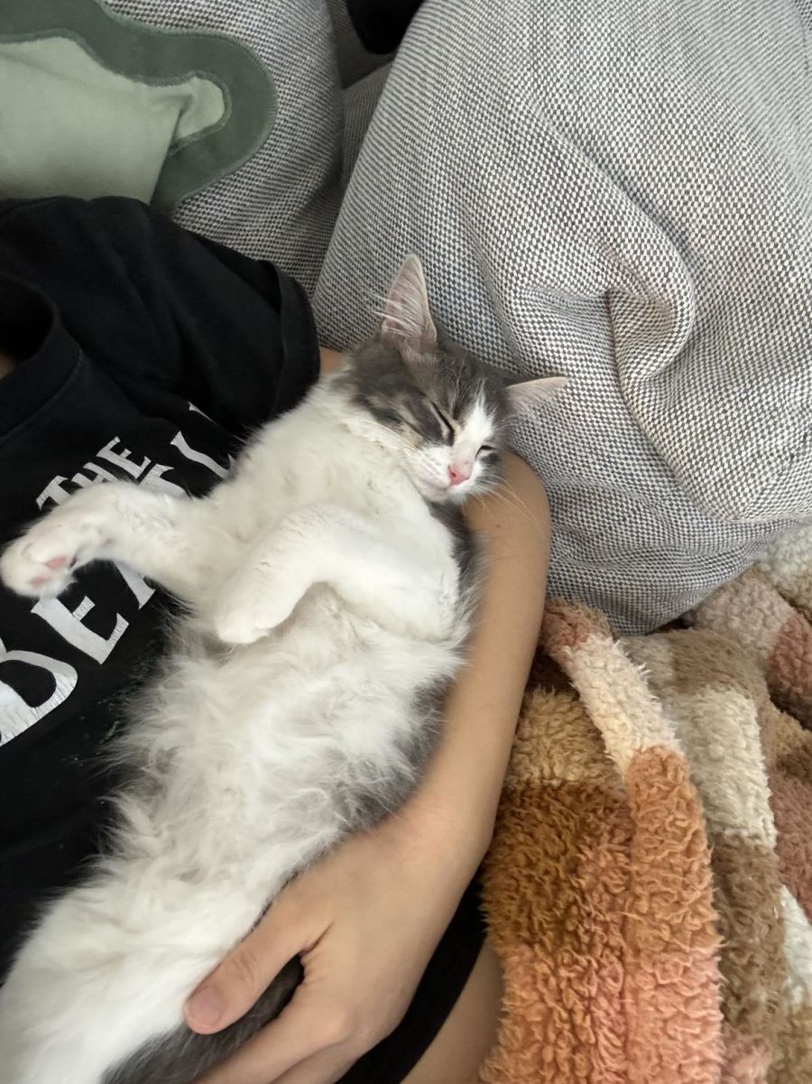 One of Pippin's most endearing traits is his chattiness. This opinionated little gentleman loves engaging in conversation and is always ready to express his thoughts with an adorable mew or a pleasant purr. At bedtime, he's always ready for a snuggle fest in your arms, showing his affection with gentle face licks.