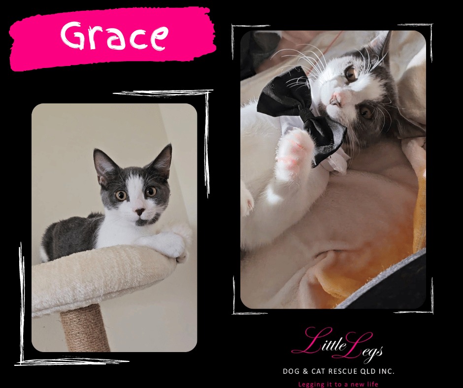 My foster humans say If you're looking for a furry companion to fill your home with love and happiness, Grace is the purr-fect match for you! We will miss her little face & adorable little squeaks (chatty & cute as heck) but we are so happy that out there somewhere is her perfect person who will give her all the love she deserves.