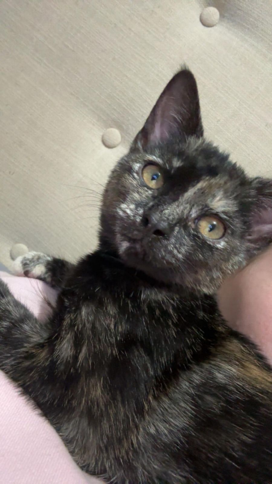 Every morning, you can expect to wake up to Margaret nuzzled next to your face, offering you a sweet, gentle morning kiss. On lazy afternoons, when you're relaxing on the couch, Margaret will jump onto your chest, give you a round of heartwarming kisses, and then doze off peacefully. She is not a fan of being woken up, but even if you do, she will meow at you, and then come in for a cuddle.