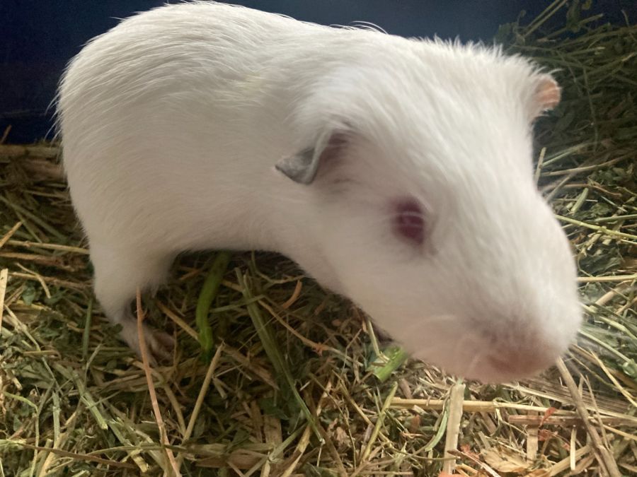 Introducing Snowy, the guinea pig we all love and adore! This little charmer is joyous and easygoing, with an undemanding personality that will make him a great companion. He is generally great around humans, charming everyone with his bright eyes and happy squeaks.