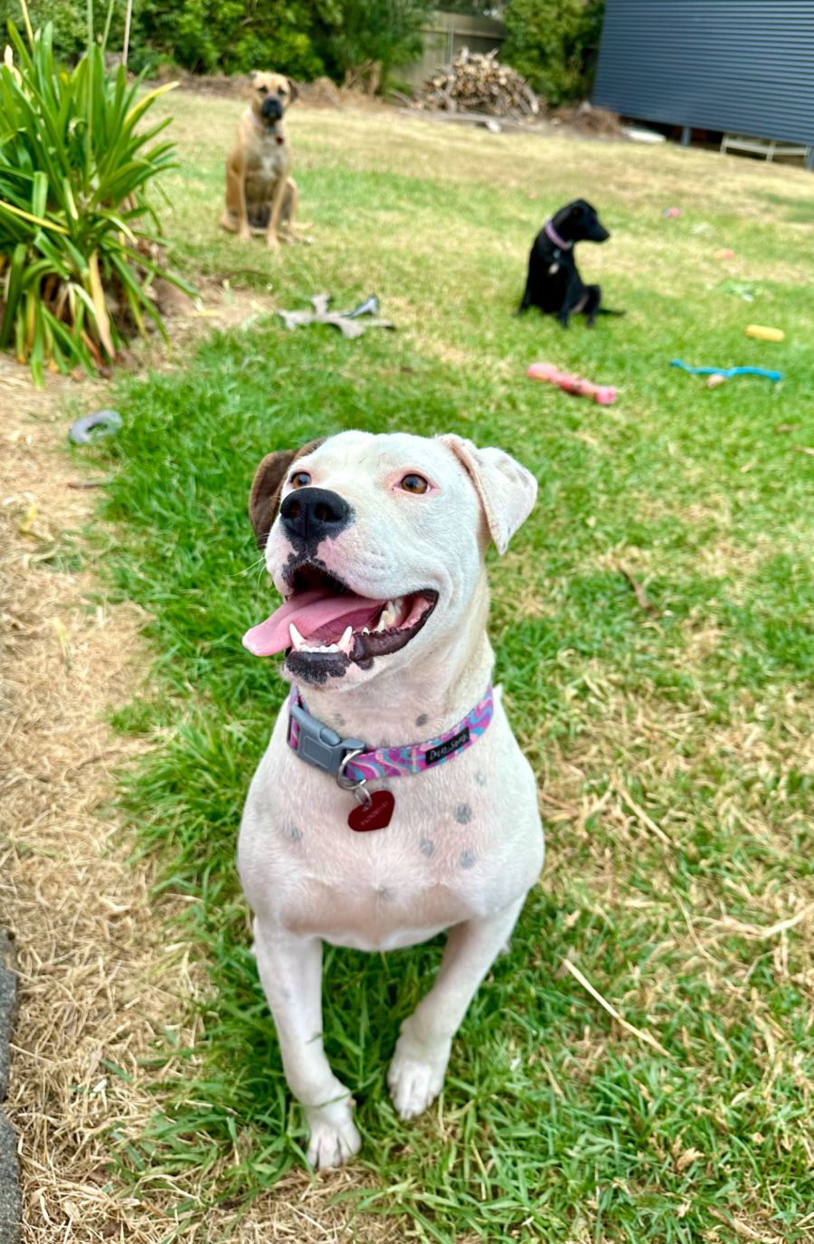You would think such a neglect would have turned her into a human hating creature that was shy and shut down, but within a week of being in care she was a cheeky, happy girl, racing around her new big back yard with all her foster friends. All she needed is TLC!