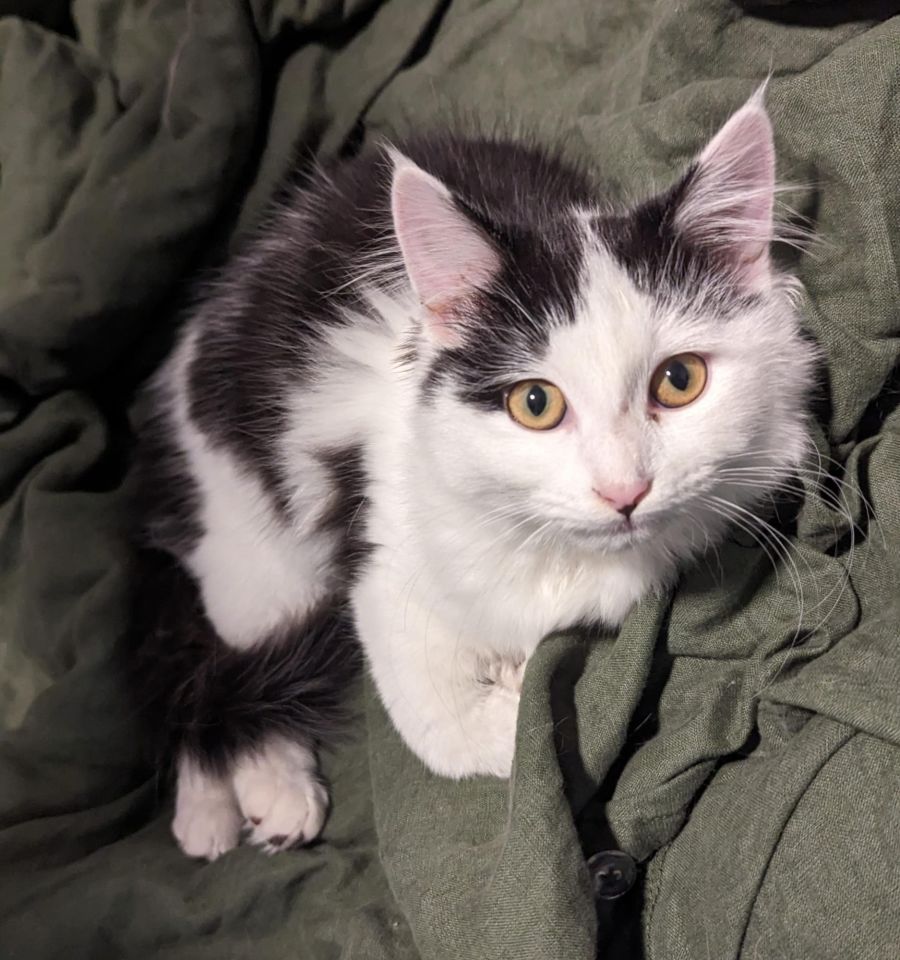 Pippa is a super charming black and white kitten who is a fun bundle of energy and affection, loves scuttling around and playing as much as she loves a cuddle.