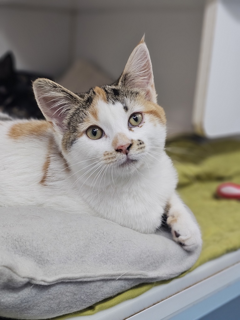 Hey there, I'm Kirousa. I'm a friendly and affectionate kitten who would suit most homes! My playful paws are always ready to pounce on anything that moves. I love playing with wand toys and mysterious shadows on the wall! When I'm finished playing, I love nothing more than finding a warm lap to curl up in.