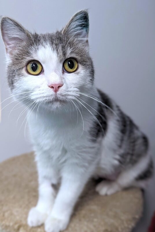Meet Riku, the spirited seven-month-old Domestic Shorthair (DSH) kitten who's bursting with energy and mischief! With her sleek coat and bright eyes, Riku is a bundle of joy ready to bring endless entertainment and love into your home.