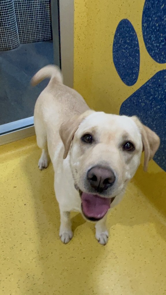 Meet Sadie, a delightful 2-year-old Labrador Retriever mix overflowing with affection and love! She's a true cuddle bug who adores being close to her humans. Like any Lab, Sadie has a hearty appetite, so precautions are needed to keep her from eating everything in sight. Utilizing a slow feeder or enrichment toys during mealtime will help curb her enthusiasm. Sadie's toy collection knows no bounds, and she's fond of dragging her bed to her favorite spot in the house. With experience around farm animals, she's proven to be calm and adaptable. Sadie longs to be an indoor member of the family and thrives with regular human companionship. While she enjoys chatting, she's not a frequent barker. With basic commands mastered and an open heart, Sadie awaits the perfect family and is ready to meet other dogs at adoption.