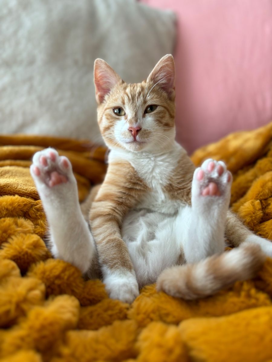 Welcome to the adorable world of Fish! Fish is an irresistibly cute, 16-week-old ginger and white Domestic Short Hair kitten with a big personality!