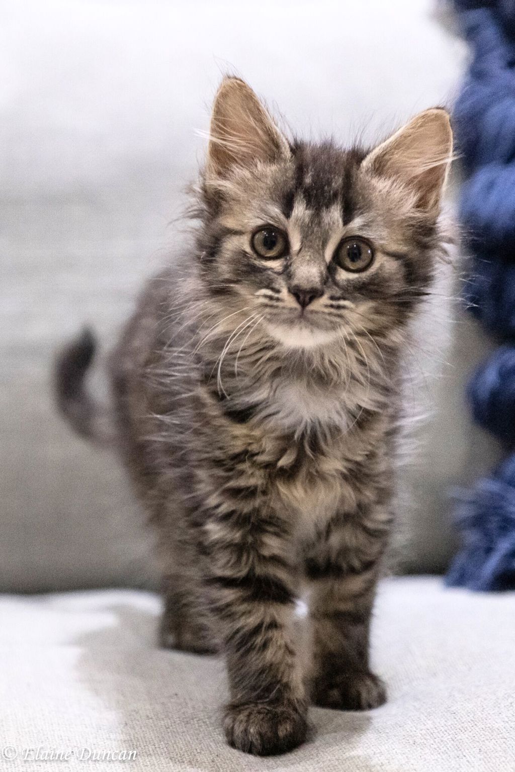 This delightful kitten is a master of fun and creativity. Give her a bit of paper or a wiggly string and she'll turn it into a fascinating toy that will keep her entertained for ages. She loves to pretend to stalk her humans, getting down very low, wiggling her cute toosh and tail ready to pounce, then runs at full speed for a cuddle.