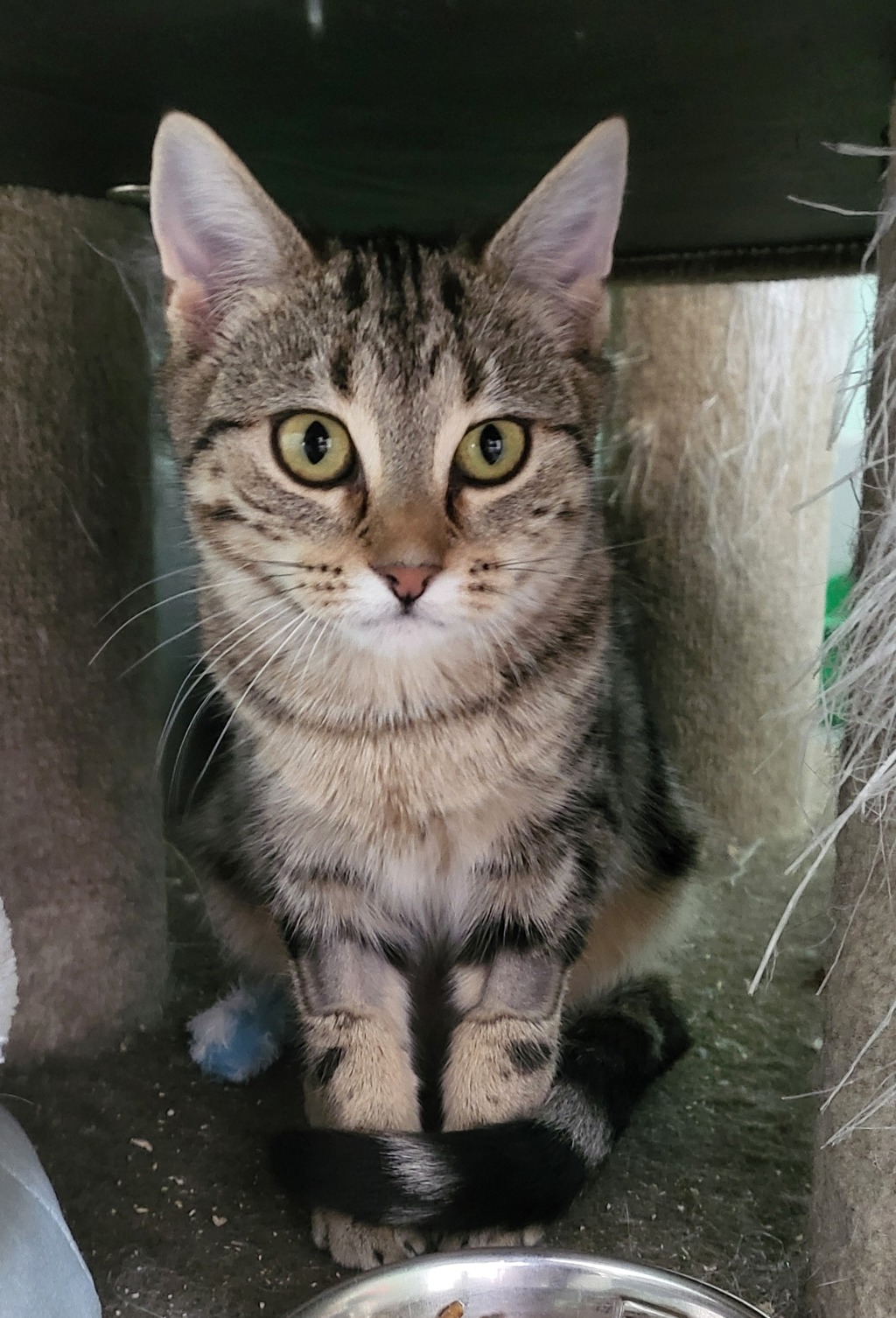 Lizzie is a shy girl who needs a bit of time to warm up to new surroundings. Hand shy and cautious, Lizzie enjoys playing with toys, which helps her come out of her shell. She will thrives in a quiet home where she can settle in at her own pace, as loud noises and fast movements tend to spook her.