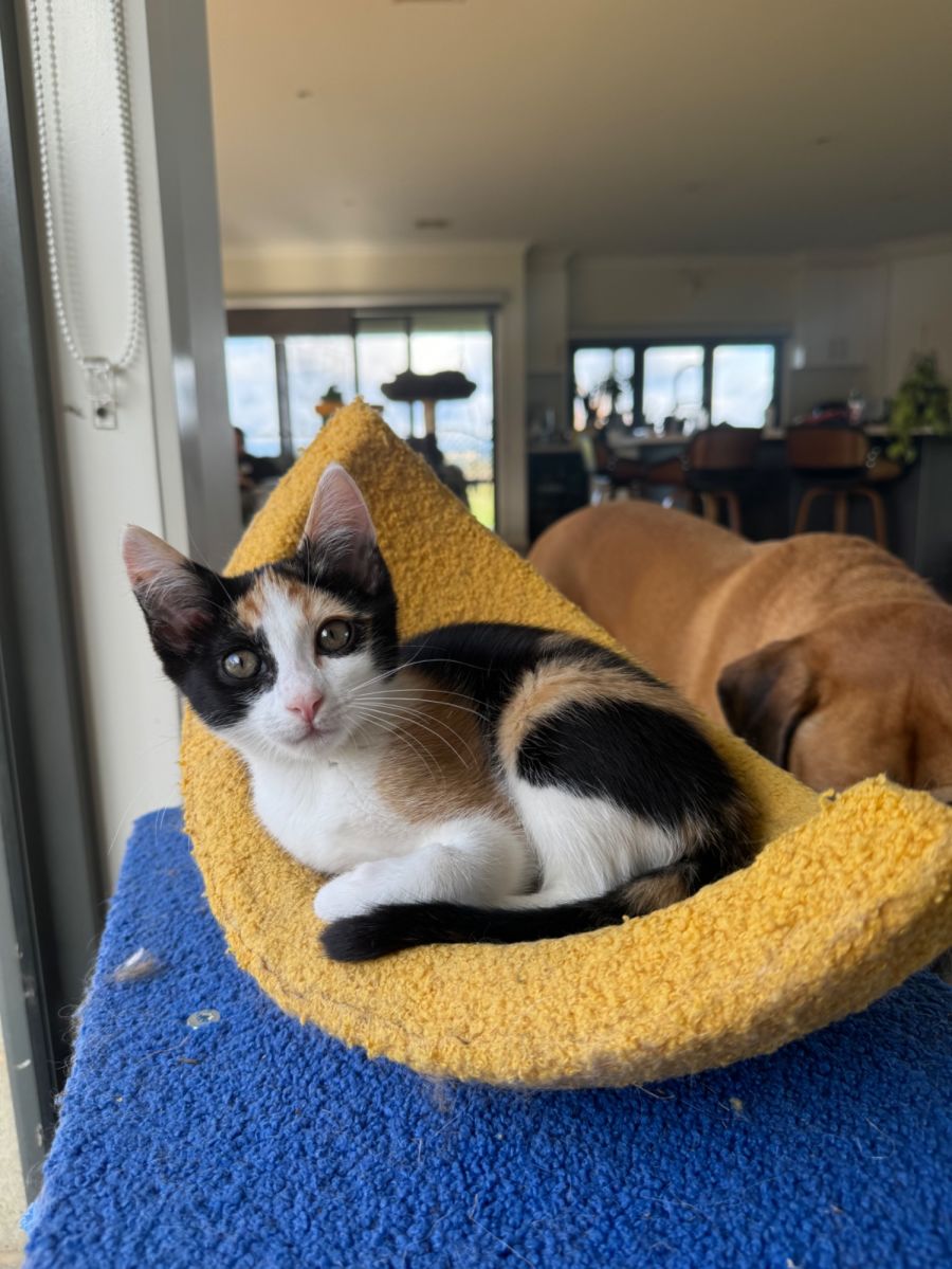 Sweet Wren! This stunning girl is ready to fly the nest & find her forever home. Just like her siblings, she is confident, playful & a bit cheeky! If she not racing through tunnels, she will seek you out for a quick cuddle. She likes to scream her affection at you when it’s time for dinner, but in a cute way! She is cat & dog friendly- she is best suited to a home with another cat companion or if you are home often.
