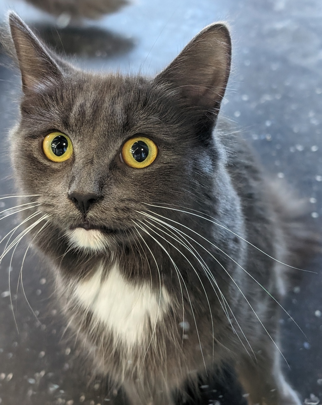 Hello there! My name is Freddie, and I'm a pretty little lady with lovely grey and white medium hair. My journey brought me to BARC along with my adorable litter of kittens. Motherhood was a beautiful experience, but now I'm ready for a peaceful, kitten-free life where I can be the center of attention.