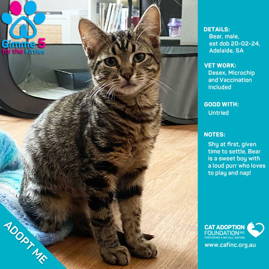 Donate to Bear at Cat Adoption Foundation Incorporated via Shout
