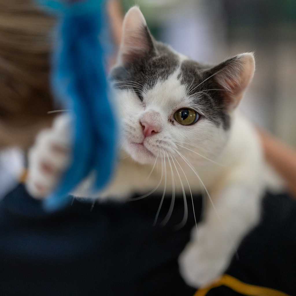 Gregone is a charming one-eyed feline with a sleek coat and a captivating gaze. Gregone is a bundle of affection and friendliness. He loves cuddles, head scratches, and spending quality time with his human companions. Despite his past, Gregone harbors no fear or reservations and is quick to trust and love.