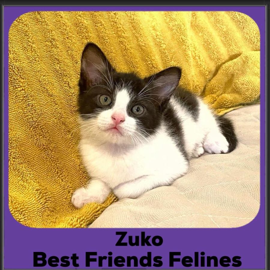Zuko would love a home with another cat (or maybe dog, he doesn’t know yet) if possible. He adores humans and seeks them out but it’s not the same as having a constant companion for when people need to go out and be peopley.