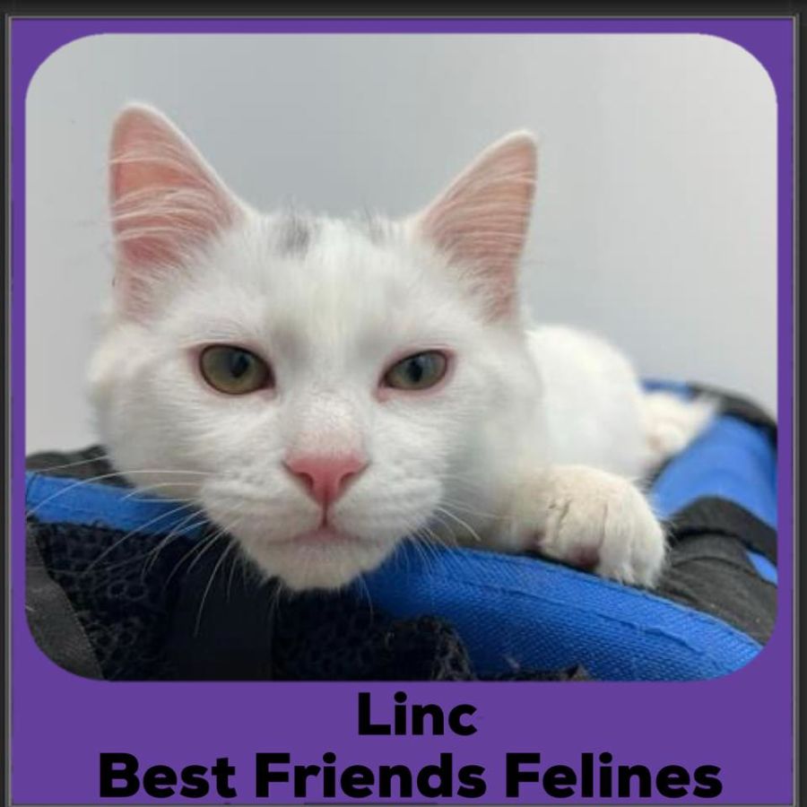 Linc loves being smothered in kisses and will great his human with purrs and smoochy legs rubs. He deserves to have the most beautiful future in a loving forever home, and