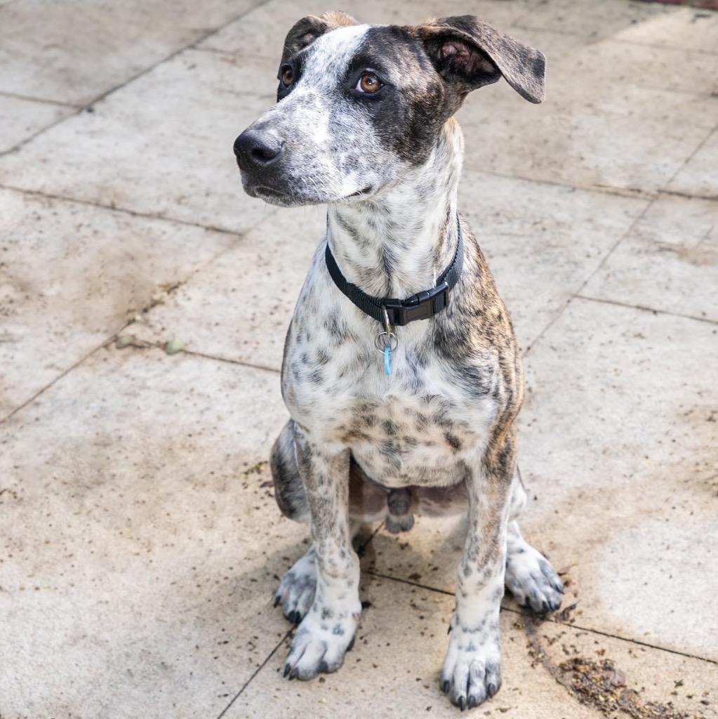 Atlas is a lovely pup who is eager to please. He's a snuggler, loves a cuddle and a tummy rub. He is so cute, when cuddling he leans right in to let you know your attention is appreciated! Atlas has quickly learnt to sit and loves to get out on walks but needs humans who are able to give him more training to build his confidence in knowing his place in this world. He is very dog social happily playing with both larger and smaller dogs and is happy to be second dog if he meets someone who needs to be top dog as long as he can still hang! Atlas is all arms and legs, so still has a bit of growing to do. What else can we say? He's a friendly guy looking for a loving family of his own.