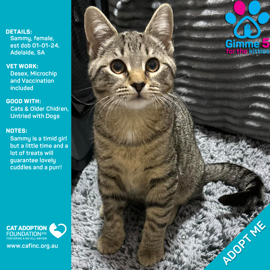 To adopt this kitty please contact Sayla on 0422 652 837 or email us at info@cafinc.org.au.