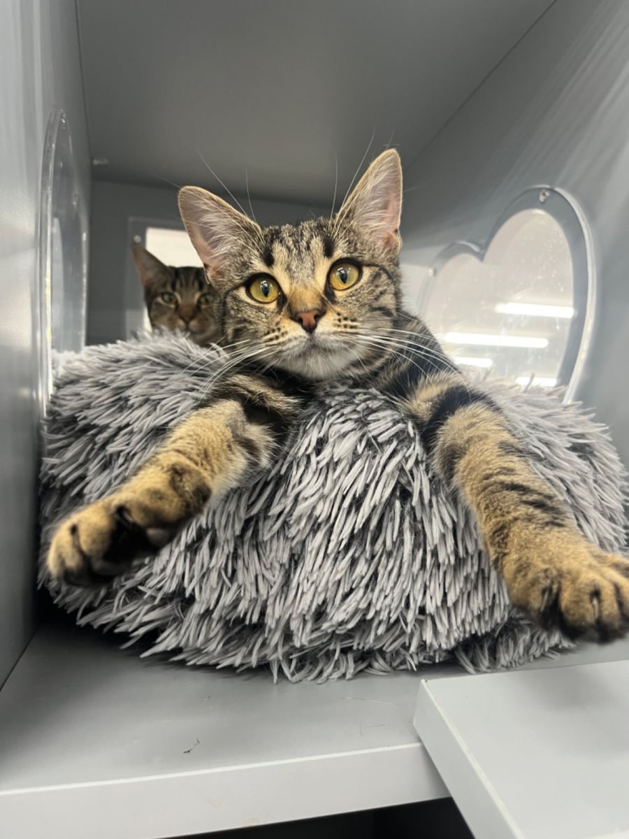 Poppy delights in playtime, showing a keen interest in her toys. However, her affectionate behaviour doesn't stop there; she also enjoys giving head bops as signs of her affection, and she loves nothing more than purring contently while you scratch under her chin.