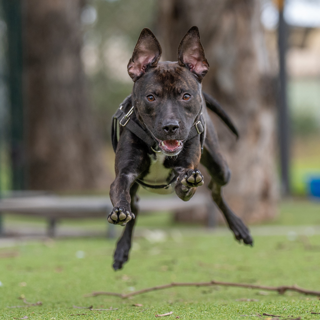 Meet Gravy, a nearly one-year-old Staffordshire Terrier mix with a zest for life and a heart full of love. Just like the perfect accompaniment to chips, Gravy brings a delightful and heartwarming flavor to any household. Her playful spirit and boundless energy make her the perfect companion for an active family ready to embrace her enthusiasm and guide her through new adventures.