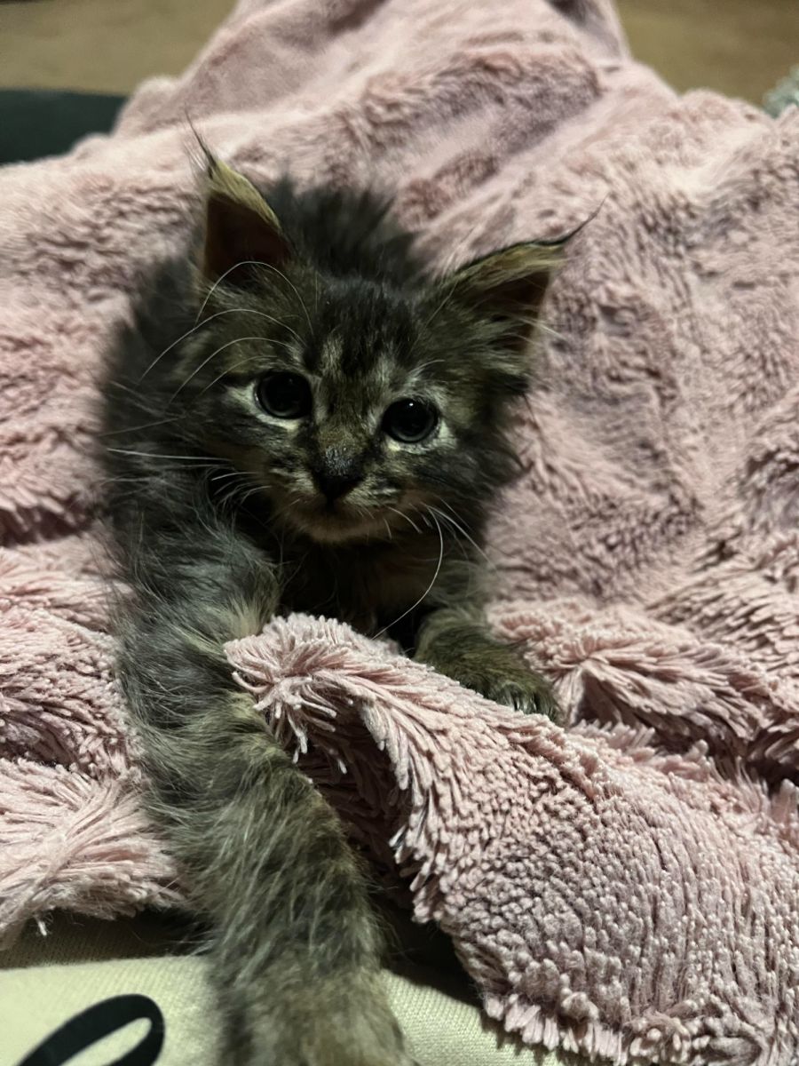 Patrick is an overly confident kitten as he was hand raised. He loves to cause mischief! He lives to play and loves human company. When he is tuckered out he loves to cuddle up on a warm lap with his big purrs.