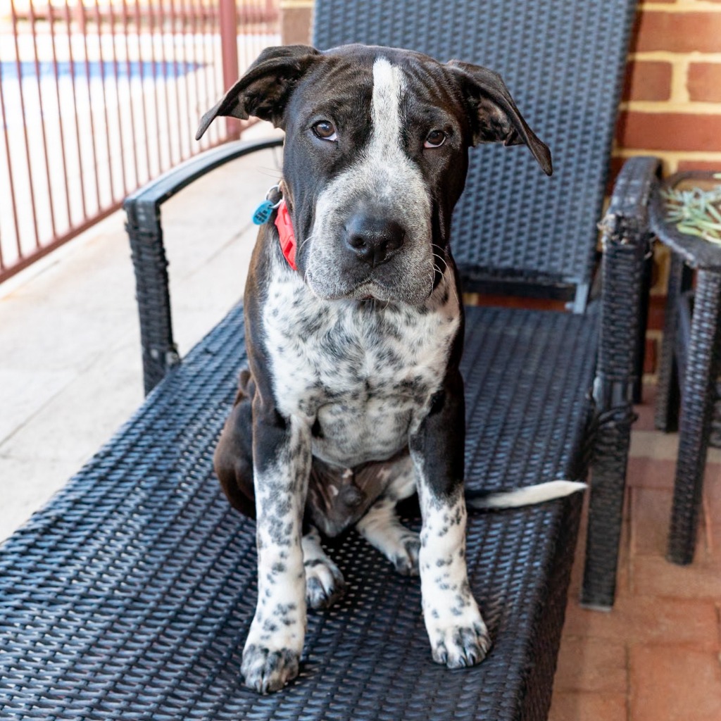 Meet Sheldon! What can we say about Sheldon….he is gorgeous, super friendly, a real smoochy boy, loves a pats, cuddles and…...he is a bit of a goof ball! Sheldon is a people dog! Loves hanging with his humans so would best suit a family where he can roll around with kids and play. Sheldon is also cat social, loves a feline cuddle. He can be boisterous but he is still a young pup who will need training and guidance to be the best boy!