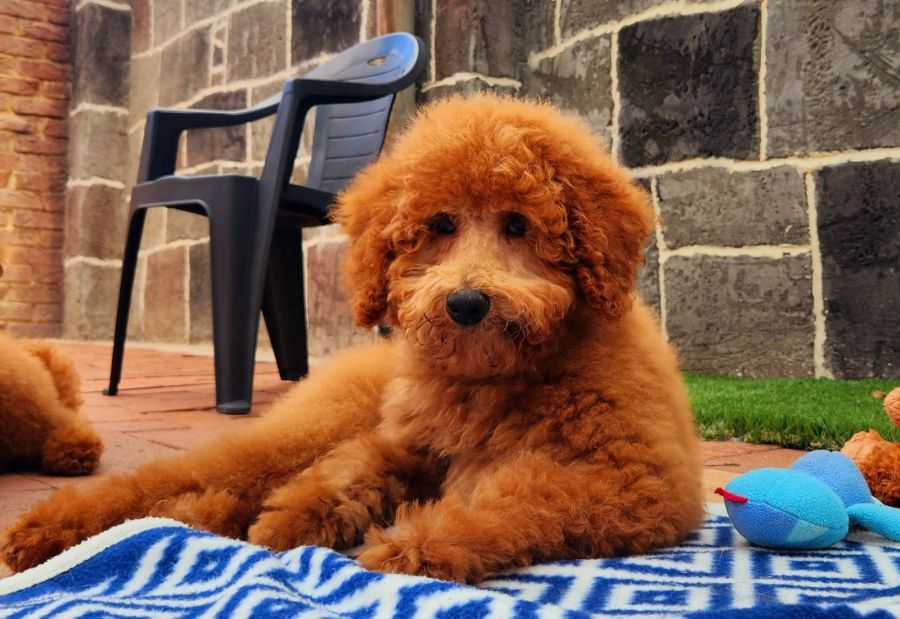 Jade is a picture-perfect blend of her Golden Retriever and Poodle heritage, boasting a fluffy coat that's soft to the touch and irresistibly adorable. Her expressive eyes sparkle with mischief and warmth, reflecting her playful spirit and insatiable curiosity.