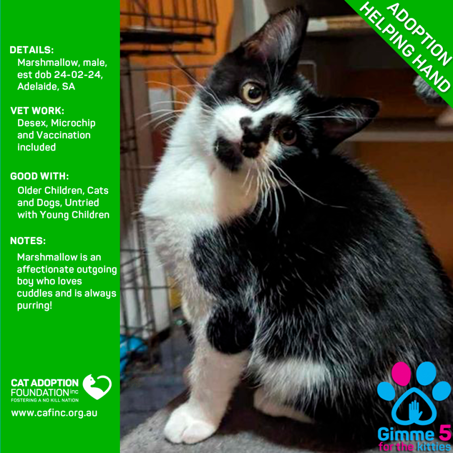 Donate to Marshmallow Helping Hand Adoption! at Cat Adoption Foundation Incorporated via Shout