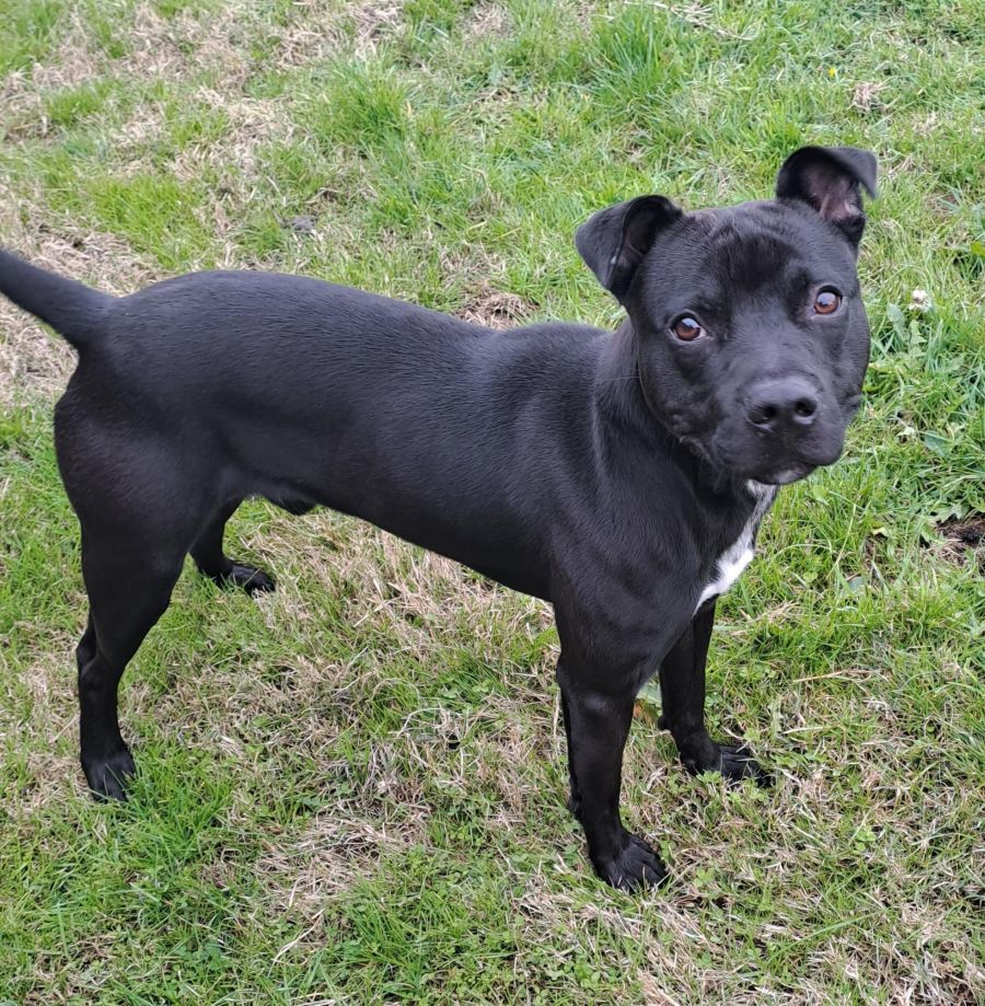 Monty is a typical Staffy, he loves his humans and would like an owner who is home more often than not. He is a tolerant boy that would benefit from some ongoing training to keep his manners in check.